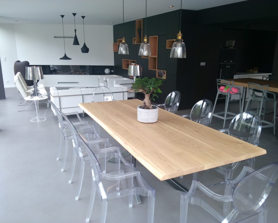 Agencement d’un appartement sur NantesSalles de bain épurée à la demande du client avec un plan de travail massif dans les tons bois